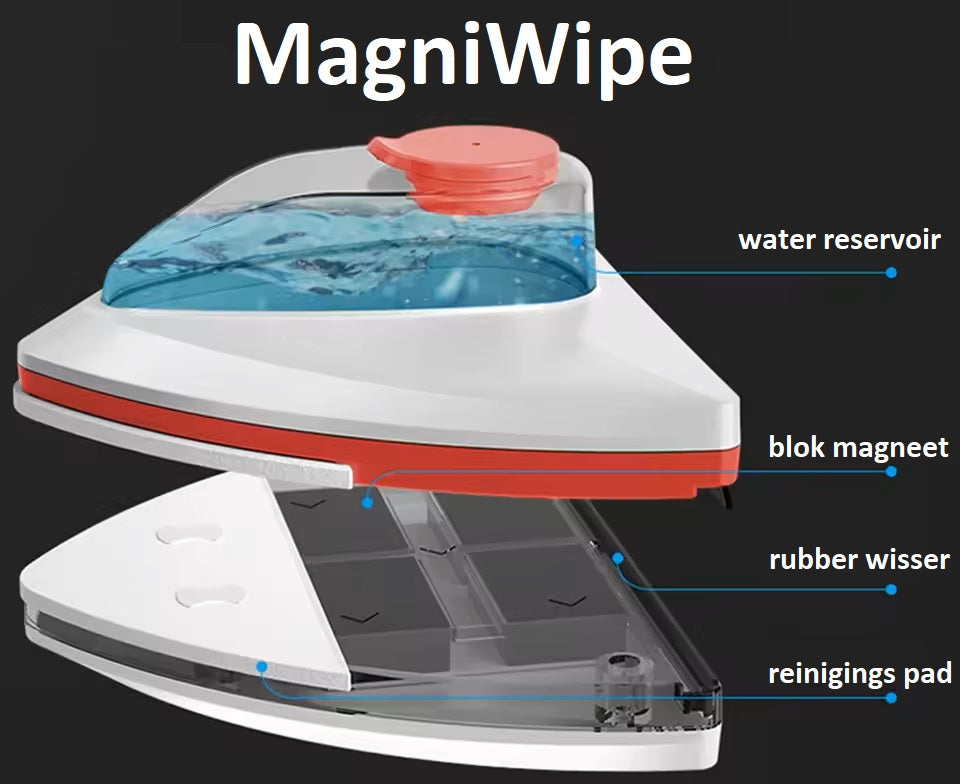 De MagniWipe magnetische raamreiniger is een innovatieve dubbele zijden raamreiniger, werkt magnetisch en maakt het mogelijk om tegelijkertijd de binnen- en buitenkant van elk raam of ruit te reinigen.